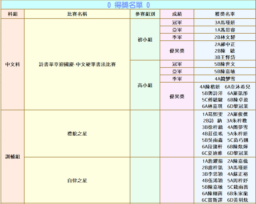 家長教師會活動一覽表